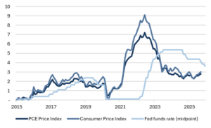 The Federal Reserve cut the Fed funds rate to a range of 3.5-3.75% last week. Three voting members dissented. Chicago Fed President Austan Goolsbee and Kansas City Fed President Jeffrey Schmid both voted against a cut, whereas newly appointed governor Stephen Miran wanted a 0.5% cut.
