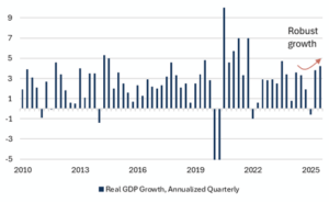 - Economic growth that is well-above trend for the US (Fig. 1),