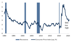 - Inflation that remains stubbornly above target and might be creeping upward (Fig. 2),