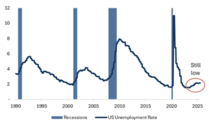 As we said last week, these are complicated times for investors, but it is too early to call the top. Risks worth watching include higher bond yields, a hawkish Fed, and concrete messaging from the Magnificent Seven that AI revenue targets will not be achieved. Until then, we remain comfortable with a modest pro-growth tilt in portfolios.