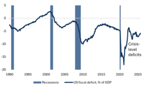 - We continue to run a 6% of GDP budget deficit, which is a stimulus level typically seen during a massive crisis (Fig. 5), and
