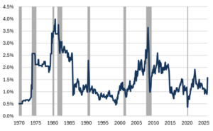 However, markets have been sanguine over the last two weeks with the S&P 500 only down about 2.5% since the end of February. For context, the 1973 Arab oil Embargo and the 1990 Gulf War led to US equity market (S&P 500) declines of -43.4% and -16%, respectively, but the 1979 Iranian Revolution and the 2022 start of the Russia-Ukraine did not lead to significant equity market sell-offs.